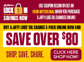 INCLUDES UP TO 5 QTS. OIL. Plus applicable shop supplies fees. Valid at participating Jiffy Lube service centers. Must present coupon at time of service. Not valid with any other offers for same service. Jiffy Lube, the Jiffy Lube design mark and Jiffy Lube Signature Service® are registered trademarks of Jiffy Lube International, Inc. © 2025 Jiffy Lube International, Inc.